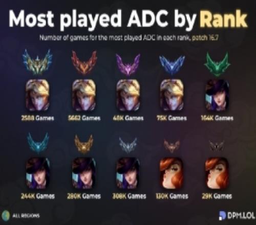 LOL各段位出場率最高的下路AD英雄:伊澤瑞爾、女警、女槍