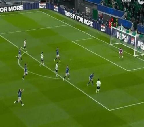 開場僅1分鐘,法蘭克福后場左側大范圍轉移到前場右側,日本球員堂安律插上將球卸下,堂安律帶球推進到禁區前沿斜...