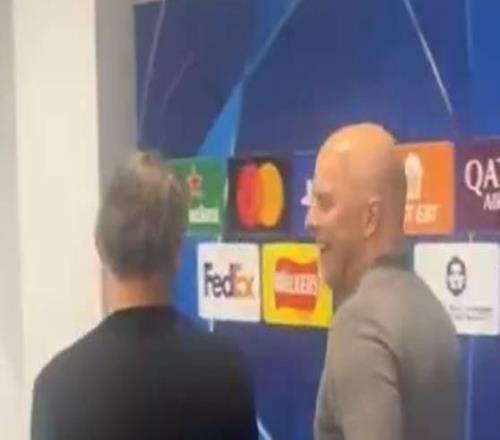 有說有笑,斯洛特和恩里克在球員通道聊得火熱