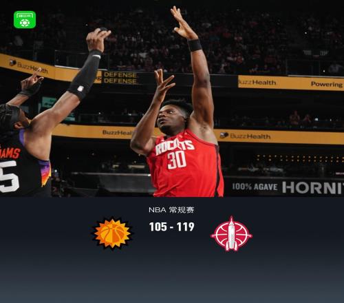 北京時間4月8日NBA 常規賽,菲尼克斯太陽對陣休斯頓火箭。半場太陽57-54火箭,最終太陽105-119火箭。菲尼克斯太...