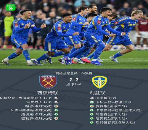 利茲聯(lián)總分64淘汰西漢姆聯(lián),時(shí)隔39年再進(jìn)足總杯4強(qiáng)