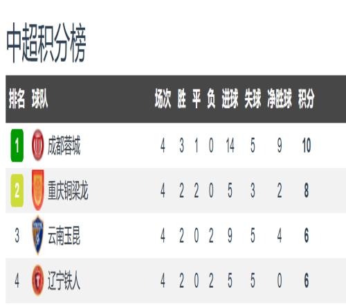 在中超第4輪之后,天津津門虎以-9分繼續在積分榜上墊底,成都蓉城、重慶銅梁龍則成為僅有的兩支保持不敗的球隊,...