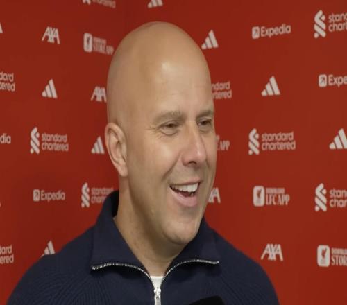 英超第32輪,利物浦主場(chǎng)2-0擊敗富勒姆,賽后,紅軍主帥斯洛特出席新聞發(fā)布會(huì)接受媒體提問。嗨,阿爾內(nèi),我們想先從里...