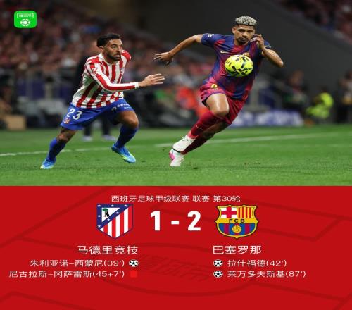 北京時間4月5日西班牙足球甲級聯賽 聯賽 第30輪,馬德里競技主場對陣巴塞羅那。馬德里競技朱利亞諾-西蒙尼破...