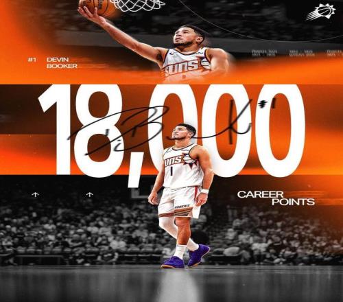 歷史第三年輕分衛!布克達成18000分里程碑僅次于科&喬
