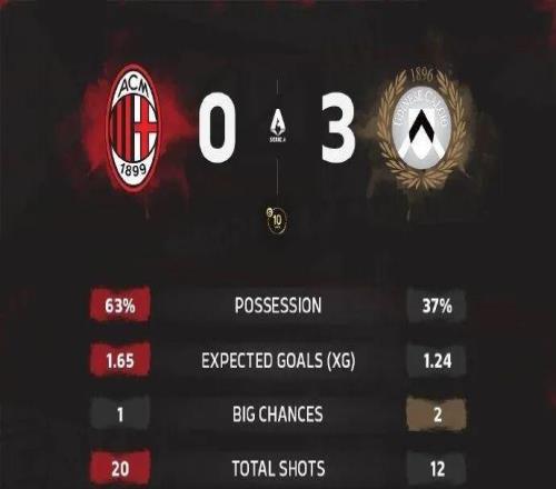在北京時間4月12日結束的意甲第32輪一場焦點戰中,AC米蘭在主場爆冷0-3完敗給中游球隊烏迪內斯。聯賽2連敗并...