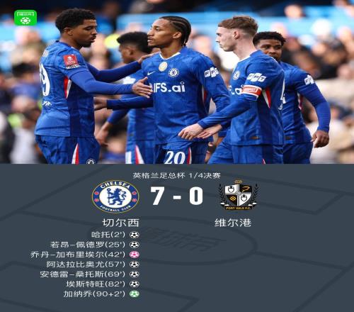 70維爾港,切爾西成足總杯近20年首支14決賽單場進7球的球隊