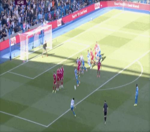 第14分鐘,布萊頓左路傳中,戈麥斯禁區(qū)后點(diǎn)頭球擺渡,維爾貝克力壓科納特頭球接力破門(mén),1-0!