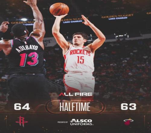 北京時間3月22日,NBA常規(guī)賽:火箭123-122絕殺熱火。阿德巴約21投12中,三分4中2,罰球8中6,狂砍32分21籃板4助攻2搶斷。阿門-湯普森17投10中,三分1中1,罰球3中3,砍下24分18籃板4助攻,最后時刻壓哨補籃絕殺。
