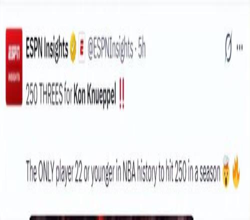5.克努佩爾成為歷史上唯一一個單賽季250+三分且22歲及以下的球員;