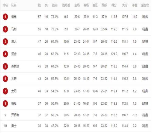 下一個(gè)是湖人47勝26負(fù)不算特別穩(wěn)坐第三,領(lǐng)先第四的掘金1.5個(gè)勝場。