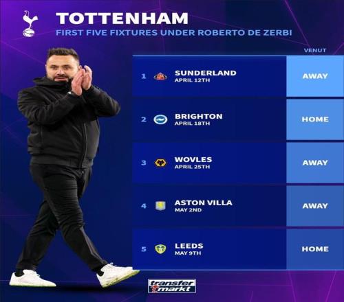 能否保級成功德澤爾比上次執教英超時前五場一場未勝 懂球帝 2026-04-01 08:13:08 熱刺官方確認德澤爾比出任球隊新主帥,將帶領球隊在本賽季英超剩余的7場比賽中完成艱難的保級任務。不過德澤爾比上一次執教英超時前5場比賽一場未勝。德澤爾比曾在2022年至2024年執教英超球隊布萊頓,在這位意大利教練帶領的前5場比賽中,布萊頓一場未勝,戰績為2平3負,分別戰平利物浦和諾丁漢森林,輸給了熱刺、布倫特福德和曼城。而熱刺本賽季剩余的7個對手分別是桑德蘭、布萊頓、狼隊、維拉、利茲聯、切爾西和埃弗頓。熱刺隊免費觀看_布萊頓免費觀看_埃弗頓免費觀看_熱刺隊高清在線_布萊頓高清在線_埃弗頓高清在線 熱刺隊 布萊頓 埃弗頓 利物浦 桑德蘭隊 德澤爾比 英超冠軍 上一篇: 官宣!熱刺3次換帥塵埃落定德澤爾比5年合約上任7場比賽定保級 下一篇: 想加工資,圖片報:多特內部認為施洛特貝克被欲望沖昏頭腦