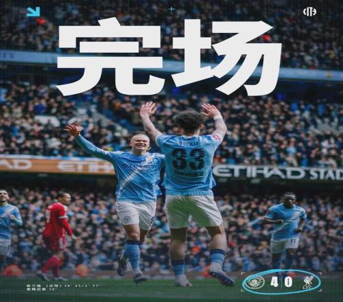 4月4日,足總杯1/4決賽,伊蒂哈德球場。曼城4-0利物浦,哈蘭德帽子戲法,賽季三殺。