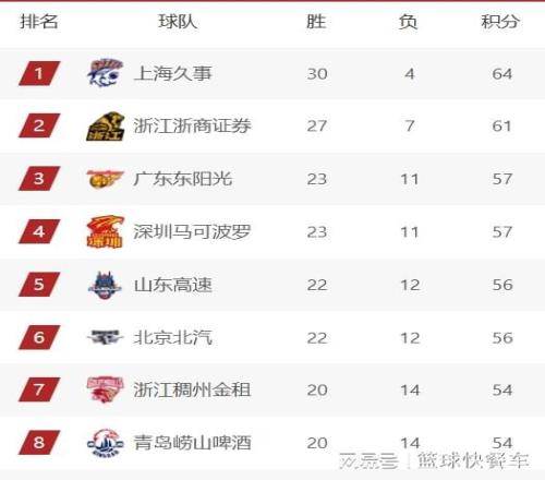積分榜第7名則屬于浙江隊,第8名則是青島隊,他們的戰(zhàn)績都是20勝14負。積分榜第9名則是寧波隊,這一輪比賽他們30分大勝山東隊以后,戰(zhàn)績提升到19勝15負,距離隊史第一次季后賽又進一步了。山西隊這一輪比賽在客場掀翻了新疆隊,成功將戰(zhàn)績提升到18勝16負,排名也直接反超遼寧隊,沖上了積分榜第10名。而四冠王遼寧隊,他們則被擠出前十名,下滑到積分榜第11名。