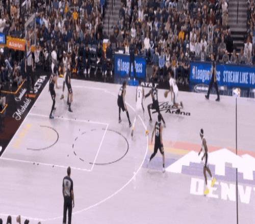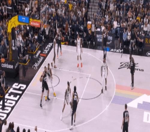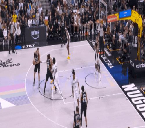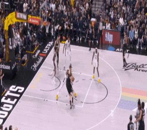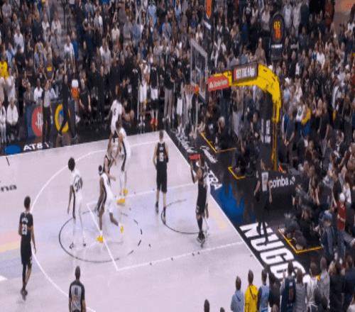 約基奇最后一個(gè)盲側(cè)弱切強(qiáng),在文班沒注意時(shí)接球,轉(zhuǎn)身輕拋,第40分。又是巧打。