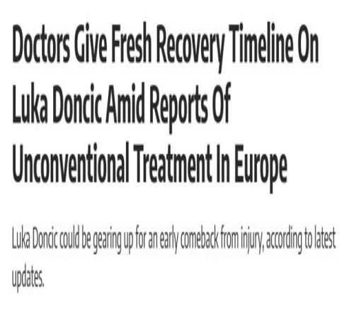 綜合兩位醫(yī)生的看法,使用新療法的東契奇有望在3周左右復(fù)出趕上季后賽首輪的部分比賽。不過,這也確實要冒著傷勢加重的風險。