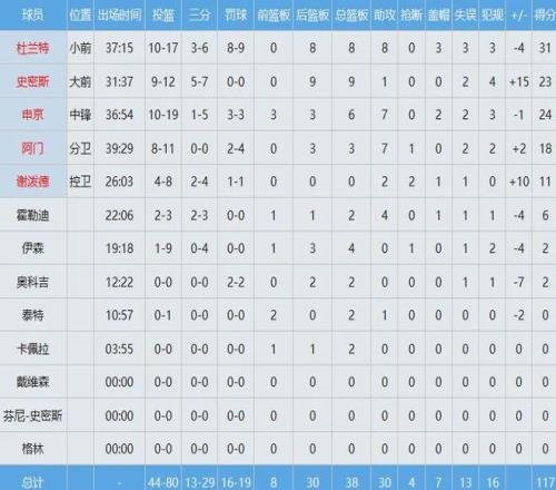 此役杜蘭特31分8板8助3帽,申京24分6板7助2帽,阿門18分3板7助。