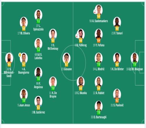 那不勒斯首發:32-瓦尼亞、5-胡安(85'31-別克馬)、4-布翁喬爾諾、17-奧利維拉、3-古鐵雷斯、68-洛博特卡、99-安古伊薩、37-斯皮納佐拉(74’21-波利塔諾)、11-德布勞內(85'20-埃爾馬斯)、8-麥克托米奈、23-吉奧瓦尼(70’27-阿利松·桑托斯)。