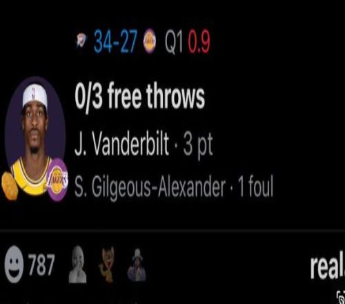 最搞笑是范德彪是在第一節結束前三罰不中,結果第二節湖人讓他上場打了15秒然后叫了個暫停把他換下,就操作看著極其業余。