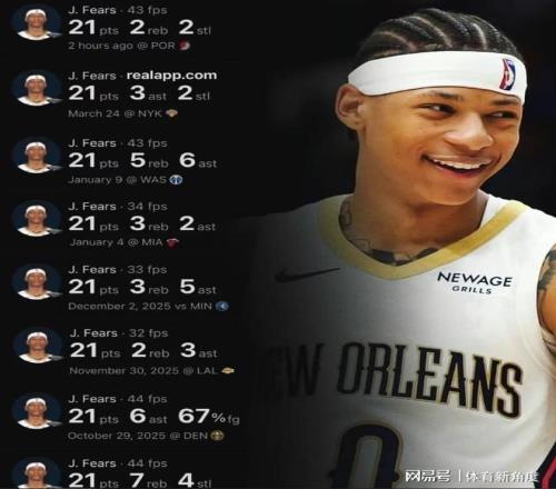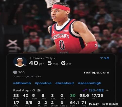 不過今天最耀眼的還得是費爾斯這個"數(shù)據(jù)怪獸"。這位新秀前腳剛打破生涯得分紀錄(此前最高28分),后腳就轟下40分5板6助3斷的恐怖數(shù)據(jù),正負值+30更是夸張到離譜。最絕的是他的得分分布:29投17中,三分7中1,罰球5中5——這哪是得分后衛(wèi)啊,分明是穿著21號球衣的"中距離魔術師"!看著費爾斯在場上各種急停跳投,我突然明白為什么鵜鶘球迷現(xiàn)在管他叫"人類21分精華"了——因為這哥們兒今天之前單場最高分才28分啊!