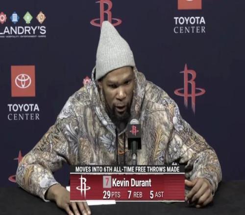 火箭以113-102戰勝76人。賽后杜蘭特提到了最近球隊的狀態:打法更具持續性、執行力更強,默契和化學反應仍在建立,四節表現有待改進,但關鍵時刻能投進關鍵球。其實今天末節最主要的因素還是在杜蘭特,當然這期間霍樂迪也打進了一個三分,這都在力?;鸺紦瀯荨T偌由献罱鸺奶幚砬蚨挤浅Q杆伲瑹o球跑位積極,這都在全面提升進攻端的上限。