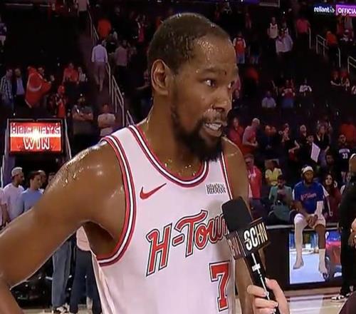 北京時間4月10日,NBA常規賽火箭主場113-102戰勝76人。賽后,火箭隊球員杜蘭特接受了媒體的采訪。