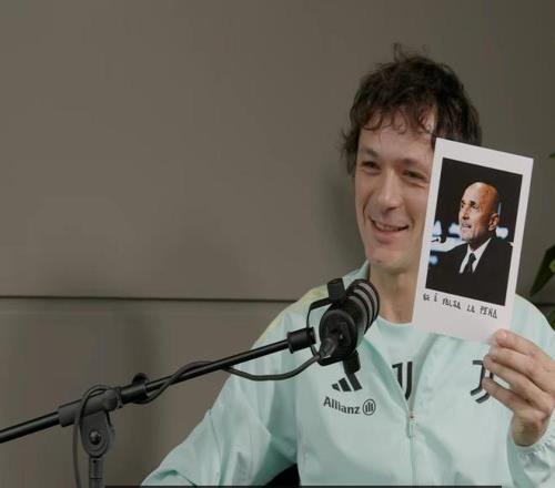 主教練,感謝你讓我們沉浸在這份情感之中。我現在動力十足、斗志昂揚。在結束之前,我占用最后一分鐘。《閑談》有一個傳統儀式——照片環節。通常我們會請嘉賓帶一張年輕時的照片,而我們為你選擇的,是你在安聯球場的“青春印記”:那是你第一次身穿西裝、打著領帶,作為尤文圖斯主教練走進這座球場參加上任新聞發布會的照片。看這兒。如今幾個月過去了,如果看到這張照片,你想對上任第一天的盧西亞諾-斯帕萊蒂說些什么?愿意寫在下面嗎?