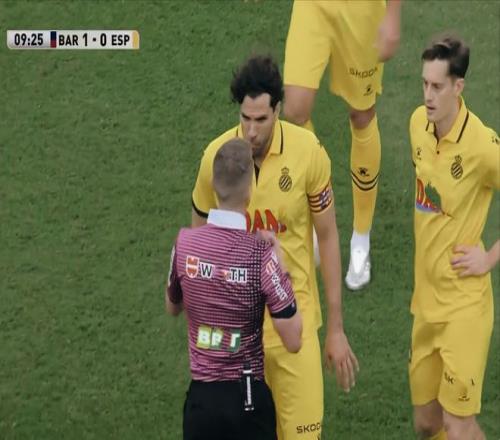 然而第10分鐘,巴薩利用角球的機會,亞馬爾直接傳到后點,后點插上的費蘭托雷斯頭球破門,1:0!落后的西班牙人逐漸加強了逼搶強度,趁勢發動了幾次攻勢,但是沒有形成實質性的威脅。