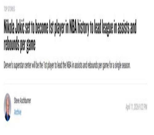如今,約基奇的史詩級數(shù)據(jù)表現(xiàn),加上球隊目前11連勝的勢頭(自3月12日以來14勝2負),無疑會增加他爭奪MVP的籌碼,就像他幫助掘金在西部排位中一路攀升那樣。但效果究竟有多大仍有待觀察:上賽季他以中鋒身份打出場均三雙,最終在三位MVP得主中也只拿到選票第二。現(xiàn)在,雷霆的亞歷山大依然是MVP頭號熱門,而且在媒體和球員摸底調(diào)查中,亞歷山大都獲得了最多的支持。