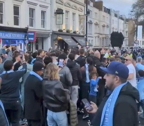 曼城球迷在倫敦街頭瘋狂慶祝,高唱“阿森納,你們在看嗎” 懂球帝 2026-04-13 09:08:47 根據(jù)《太陽報(bào)》發(fā)布的視頻,在戰(zhàn)勝切爾西后,曼城球迷聚集在倫敦街頭,肆意慶祝勝利。由于阿森納本輪不敵伯恩茅斯,在戰(zhàn)勝切爾西后,曼城少賽一場距離阿森納僅剩6分,奪冠希望陡增。而在賽后,大批曼城球迷聚集在倫敦街頭,載歌載舞,慶祝這場大勝。視頻的末段可以聽到,曼城球迷們齊聲高唱“Are you watching, Arsenal?(阿森納,你們在看嗎?)”倫敦免費(fèi)觀看_曼城免費(fèi)觀看_瘋狂免費(fèi)觀看_倫敦高清在線_曼城高清在線_瘋狂高清在線 倫敦 曼城 瘋狂 阿森納 切爾西隊(duì) 伯恩茅斯隊(duì) 上一篇: 瓜迪奧拉攤牌:贏不了阿森納,這賽季爭冠就涼了 下一篇: 拉涅利攤牌:當(dāng)年賠率50001,外星人登陸都比我們奪冠靠譜