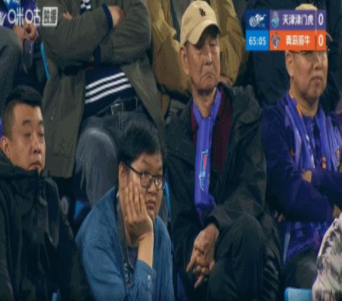 第65分鐘,比賽來到65分鐘,津門虎隊(duì)仍0射門,眾多球迷表情凝重