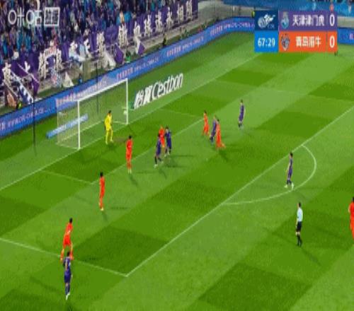 第68分鐘,基萊斯頭球攻門,皮球被牟鵬飛收下,津門虎完成第一次攻門