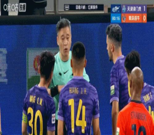 第81分鐘,黃嘉輝踩踏吃到第二張黃牌,被紅牌罰出場,津門虎十人應(yīng)戰(zhàn)