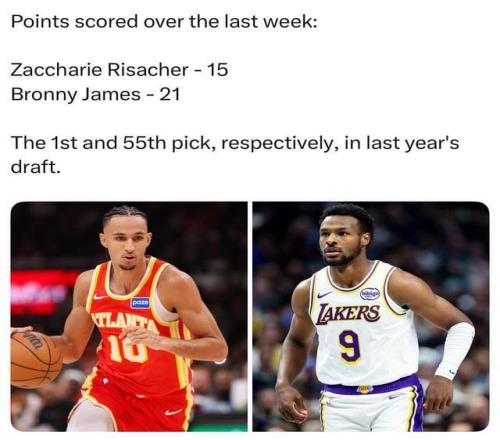 里薩謝本賽季在老鷹場均8.1分,命中率38%。布朗尼在南灣湖人場均22.6分,最近一場對山谷太陽砍下31分。更扎眼的是數據對比:狀元打了62場NBA,55號秀打了11場NBA+15場G聯賽,總得分反而領先。