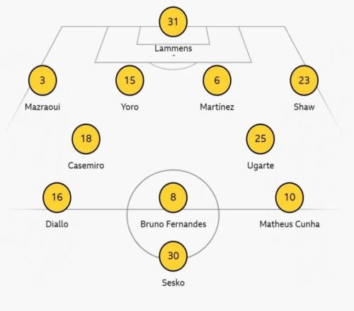 卡里克一反常態對首發陣容進行了多達四個位置的調整,其中,中后衛馬奎爾是被動缺席,他因紅牌停賽無法參與,久傷復出的利馬頂替了他的位置。