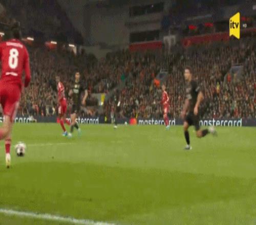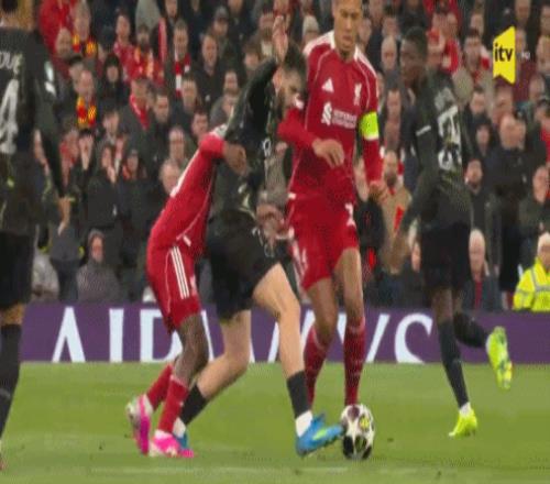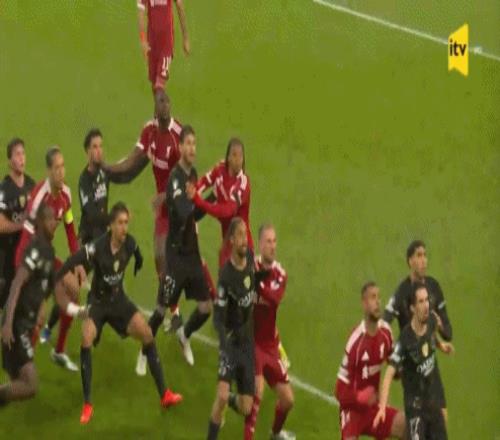 第32分鐘,凱爾凱茲射門被撲,范戴克近距離補射被馬爾基尼奧斯鏟球破壞