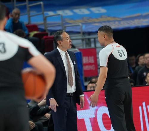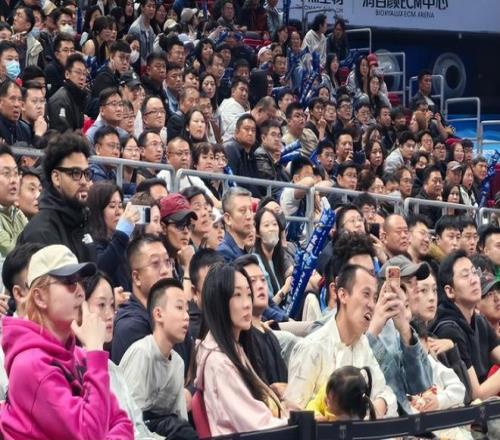 中國男籃主教練郭士強到場觀戰,但沒有坐在VIP席、場邊而是在球迷的看臺。