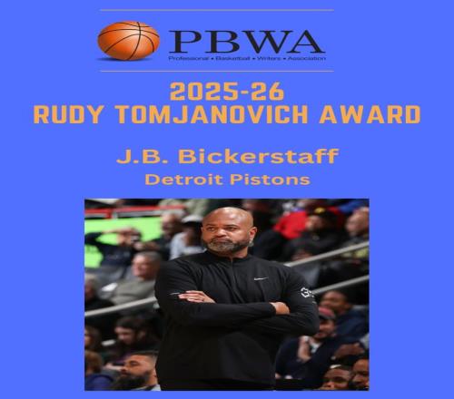 北京時間4月16日,美國職業籃球作家協會今日宣布,底特律活塞隊主帥J.B.比克斯塔夫斬獲2025-26賽季魯迪-湯姆賈諾維奇獎。該獎項用以表彰賽場執教出色,同時積極配合媒體、友善對待球迷的NBA主教練。