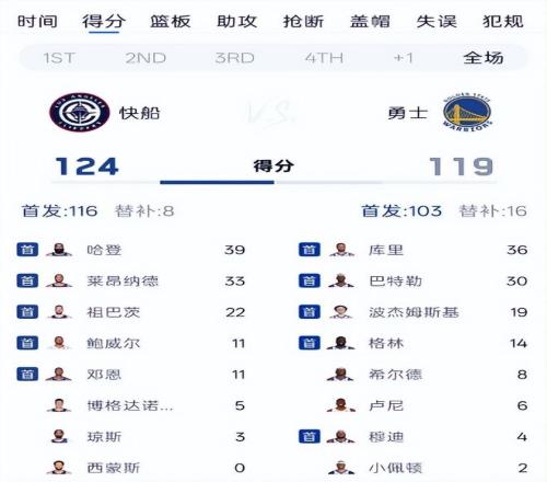 懂球帝:《勇士126-121逆轉快船晉級附加賽第二輪,庫里35分,倫納德21+7》2026年4月16日