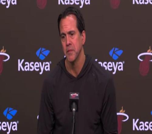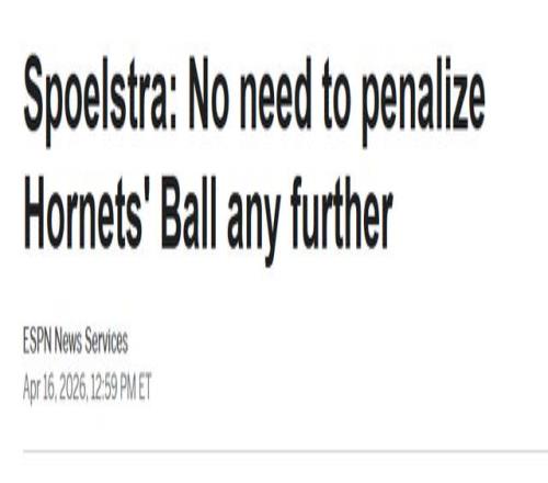 熱火剛剛以126比127客場不敵黃蜂、無緣季后賽,賽后球隊于今日召開賽季總結會議。斯波斯特拉在會上表示:“我認為沒必要再對他進行后續追加處罰,那樣并不合理?!痹谀菆鼋裹c對決中,阿德巴約因摔倒時被鮑爾拉扯腳踝受傷,提前長時間離場。
