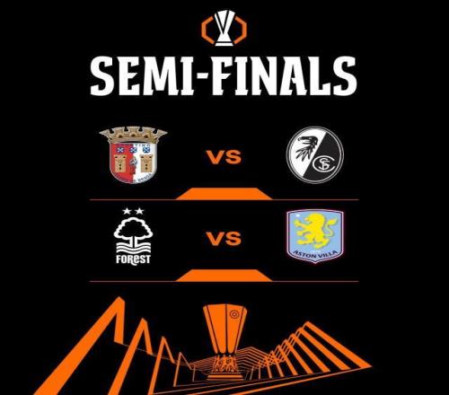 歐聯杯1/4決賽次回合結束,維拉、弗賴堡、諾丁漢森林、布拉加晉級四強。歐聯杯半決賽對陣:布拉加 vs 弗賴堡;諾丁漢森林 vs 維拉。歐聯杯半決賽首回合5月1日進行,次回合5月8日進行,維拉和弗賴堡先客后主。歐聯杯決賽將于5月21日在貝西克塔斯公園球場舉行。
