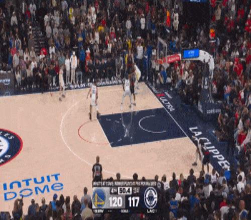 第四節(jié)剩余約50秒時(shí),比分膠著,庫(kù)里命中一記高難度三分助勇士短暫領(lǐng)先。快船隨即獲得邊線球權(quán),由新援馬瑟林負(fù)責(zé)發(fā)球組織進(jìn)攻。