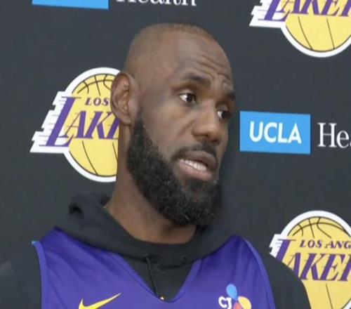 北京時間4月17日,在NBA季后賽首輪對陣火箭隊賽前,湖人隊球員詹姆斯接受了媒體的采訪。