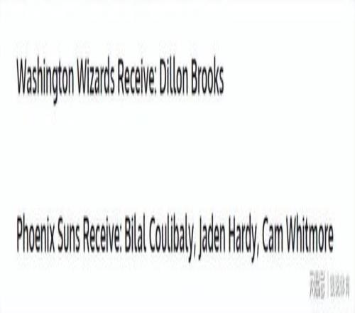 奇才送出庫利巴利、杰登·哈迪、卡姆·惠特摩爾,從太陽交易得到狄龍·布魯克斯。
