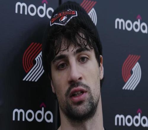北京時間4月16日,在NBA季后賽首輪對陣馬刺隊賽前,開拓者球員阿夫迪亞接受了媒體的采訪。