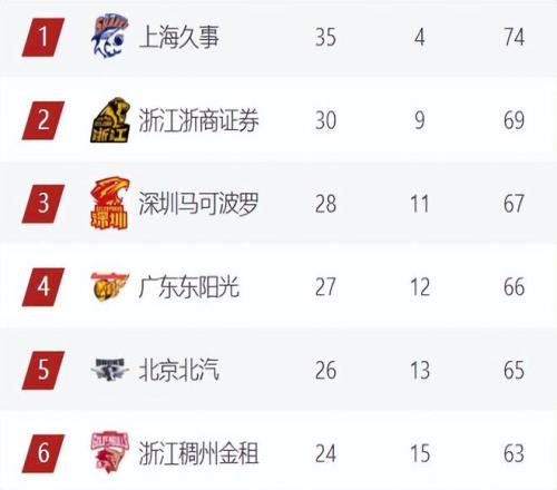 第3-5排名之間還存在比較大的懸念,深圳領先廣東一個勝場,廣東又領先北京一個勝場。盡管這三支球隊的排名看似相對穩定,但倘若后續比賽中狀態出現起伏,排名仍存在變動的可能。