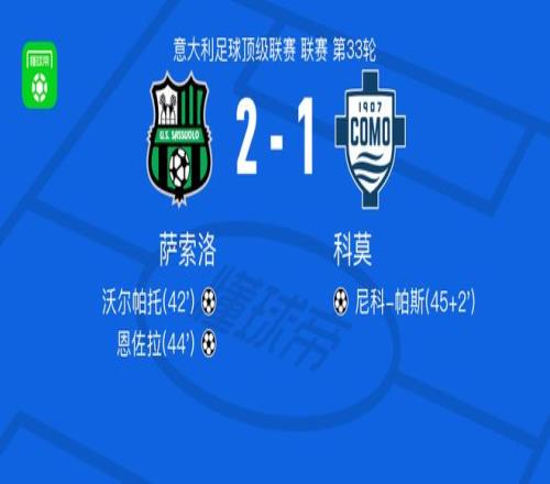 薩索洛21科莫,恩佐拉1傳1射,沃爾帕托破門 懂球帝 2026-04-18 08:58:37 北京時間4月18日意大利足球頂級聯(lián)賽 聯(lián)賽 第33輪,薩索洛主場對陣科莫。薩索洛沃爾帕托破門,恩佐拉破門。科莫尼科-帕斯破門。最終比分薩索洛 2-1 科莫。精彩瞬間第42分鐘,薩索洛球員恩佐拉助攻沃爾帕托打入一球。第44分鐘,薩索洛球員勞里恩特助攻恩佐拉打入一球。上半場補(bǔ)時第2分鐘,科莫球員伊萬-斯莫爾契奇助攻尼科-帕斯打入一球。球隊(duì)陣容技術(shù)統(tǒng)計(jì)科莫免費(fèi)觀看_尼科免費(fèi)觀看_帕斯免費(fèi)觀看_科莫高清在線_尼科高清在線_帕斯高清在線 科莫 尼科 帕斯 伊萬 薩索羅 恩佐拉 薩索洛 沃爾帕托 上一篇: 記者:齊沃選擇何塞普首發(fā)是為了讓其為意杯半決賽做好準(zhǔn)備 下一篇: 姆希塔良:我們渴望冠軍,要在場上證明自己賽季末再談未來