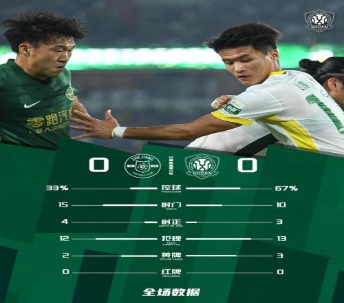 最終,北京國安客場0-0戰平浙江俱樂部綠城。