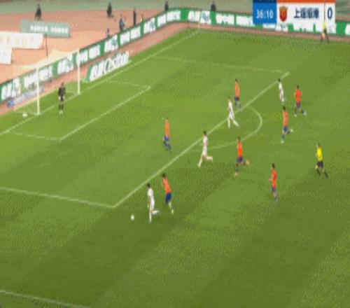 第37分鐘,李帥左路突入禁區后橫傳門前,山東泰山球員沒有攔截下來,楊希跟進推射破門,幫助上海海港1-0先下一城。