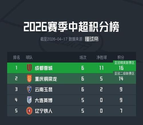 榜三云南輸球,川渝兩隊繼續擴大積分榜領先優勢 懂球帝 2026-04-18 09:13:07 北京時間4月17日,中超第一個比賽日已經結束6場比賽,積分榜最前面的“西南F3”里,成都1-0客勝三鎮,銅梁龍2-0力克新鵬城,但云南0-3送給了津門虎賽季首勝。這樣一來,川渝兩隊繼續擴大了在積分榜上的領先優勢。按照目前的積分榜,榜二重慶銅梁龍已經領先榜三云南玉昆5分,而目前積分榜上半區里,只剩排名第四的大連英博和排名第五的遼寧鐵人還未出戰,他們分別將在明天對陣河南和申花。這兩隊還有機會在積分榜上跟上川渝兩隊的腳步。川渝免費觀看_中超免費觀看_津門虎免費觀看_川渝高清在線_中超高清在線_津門虎高清在線 川渝 中超 津門虎 云南省 上一篇: 這次北京國安不能賴傷病海港比他們傷得猛但拿得分比他們多 下一篇: 客平浙江,國安連續五場聯賽不勝為2021賽季以來最長
